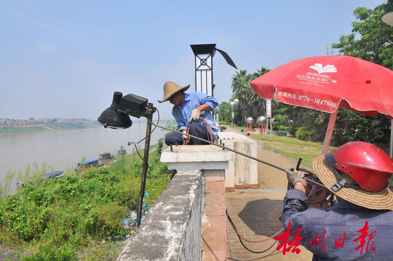 ??? 據(jù)了解,市區(qū)河西、河?xùn)|防洪堤的堤岸燈飾經(jīng)過較長時間使用,部分設(shè)備已不同程度破損,有關(guān)部門結(jié)合維修工程,將原來的射燈改為更環(huán)保、節(jié)能的燈具。 李鴻榮 攝