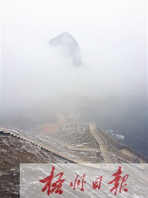 登上龍脊,我們實則在體會了一回騎龍游天。行走在龍脊上,游目俯視,腳下群山碧波浪涌,蒼茫一片如若妙手筑就的盆景。頂端石徑僅容一人徐步,兩側欄桿下面,深達七百多米的峭壁懸崖,令人如浮虛空。一陣天風掠過,移步飄搖,頓生駕龍騰飛,羽化登仙的幻覺。但此刻一看身外蒼茫空虛,浮蕩天宇,你絕對害怕升仙,只愿意腳踏實地移步回歸人阛。雖然龍脊凌空,山道險峻,卻一路跌宕蜿蜒,曲徑通幽,兩旁灌木夾道叢生,根基咬緊崖壁,給行人設置了天然屏障。行進中時見叢木扶疏,給人遮擋恐懼;或者根須縱橫,讓人攀援行走;時入竹林連墻的青帳,一片安定綠洲。從龍脊下來,大家都有“三軍過后盡開顔”的慨嘆,而又禁不住一番回味天龍頂?shù)捏@險奇趣。