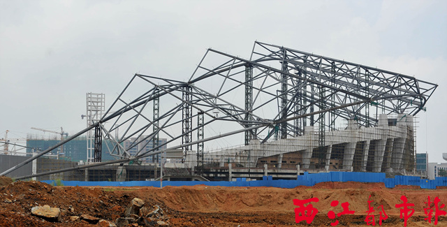 ????目前,梧州市體育場建設(shè)工程正抓緊進行,場內(nèi)的鋼架結(jié)構(gòu)搭建基本完成。