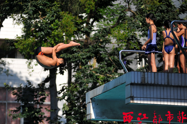 ??? 近日,在梧州市體育局陸上游泳場跳水訓練池,跳水運動員正在抓緊訓練,備戰2014年廣西青少年體育錦標賽跳水項目比賽。西江都市報記者 何鎏/攝