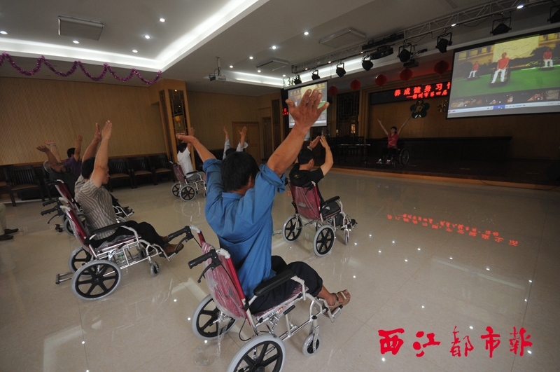 ????活動現(xiàn)場,30名肢殘人士跟著動感的音樂節(jié)拍,按照老師的示范在輪椅上或張開雙臂或按摩關節(jié),“氣氛很活躍,環(huán)境很舒適,這樣的活動很難得而且具有意義。”活動參與者程先生表示,自己平時一個人甚少進行這樣科學系統(tǒng)的健身活動,也難以有機會和這么多同伴聚在一起開展集體活動,活動給予了像他這樣的特殊群體一個體育健身的平臺。