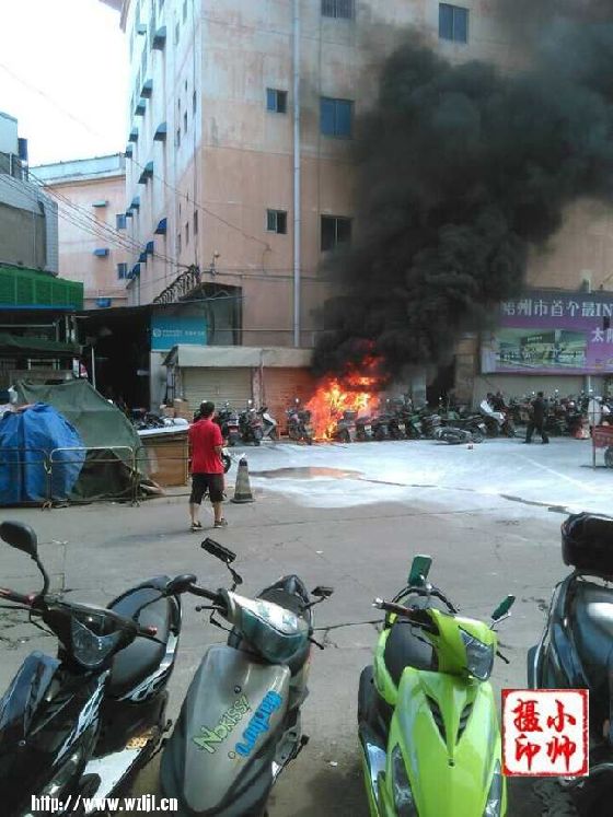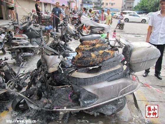 太陽(yáng)廣場(chǎng)停車場(chǎng)摩托車著火現(xiàn)場(chǎng)。騎樓論壇采影組網(wǎng)友“小帥”攝