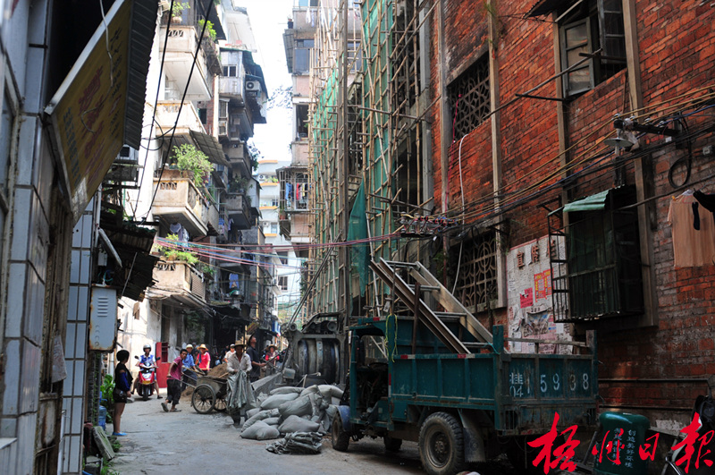 近日,在東中路,工人正進行老舊房屋重建施工。河東老城區的老舊房屋較多,且存在不同程度的安全隱患。為此,有關部門投入資金對這些老舊房屋進行改造或重建,以確保住戶的起居安全、提高房屋的利用效率。 李煜榮 攝