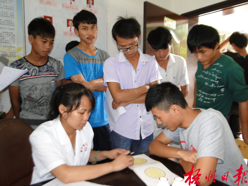 8月9日,在蒙山縣新圩鎮(zhèn),適齡應(yīng)征青年正參加色盲測(cè)試。當(dāng)天,該鎮(zhèn)對(duì)80名應(yīng)征青年進(jìn)行初檢,經(jīng)過身高體重、視力聽力、內(nèi)外科等項(xiàng)目檢查,36名初檢合格的應(yīng)征青年將到縣兵檢站參加下一階段的體格檢查。 江永錄 攝