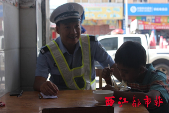 男童肚子餓了,民警立刻幫他買來食物。高速三大隊(duì)供圖