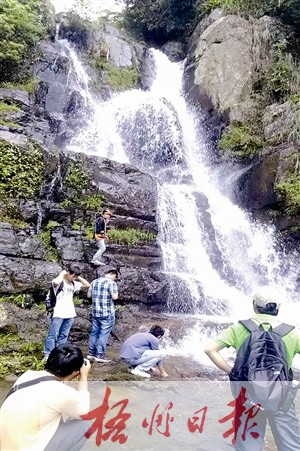 我們走走停停,不斷有新的發(fā)現(xiàn)。保護(hù)區(qū)內(nèi)林木茂盛,野生動植物繁多,有國家重點保護(hù)的野生植物,最具代表性的有蘇鐵蕨、桫欏和極稀有的野生山珍極品金線草。還有眾多國家一、二級保護(hù)動物,最具代表性的是鱷蜥、紅腹錦雞、大靈貓、娃娃魚。沿途的峽谷、山峰、流泉、飛瀑、古木、鮮花,豐富多彩,極具觀賞價值。