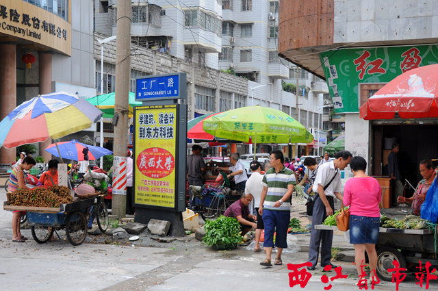 ????西江都市報報料熱線報道(記者 萬立平 實習生 覃征鵬) 近日,有市民向本報反映,在梧州市工廠一路南粵家具城對面,每天都有不少商販沿街擺賣,對市民出行造成較大影響。對此,萬秀區(qū)城監(jiān)大隊表示將加強對該路段的整治。