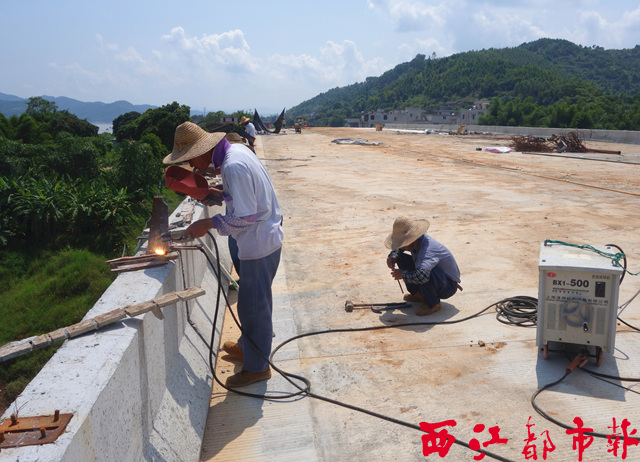 ????8月25日,在大園橋工程施工現場,施工人員正抓緊時間進行焊接。