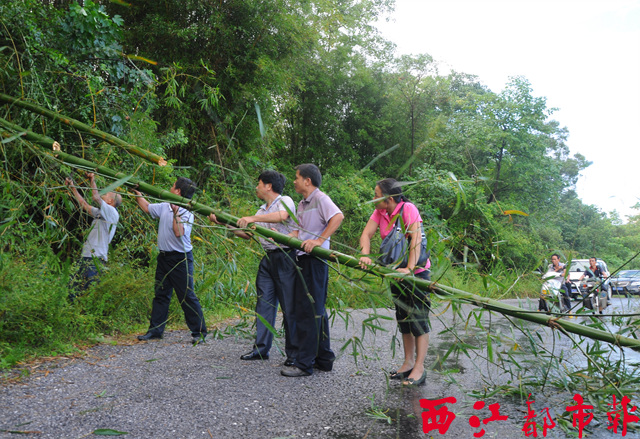 ????事發(fā)后,當(dāng)?shù)厝罕娂斑^往司機同心協(xié)力將攔路的竹木砍斷,并搬離現(xiàn)場。在眾人的幫助下,山道恢復(fù)了正常通行。