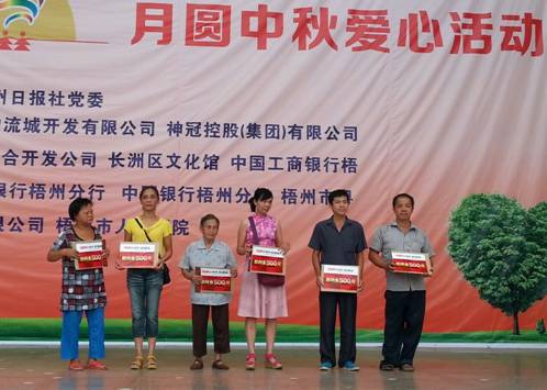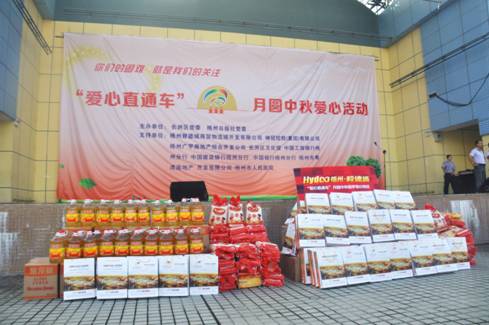 ?? ?2014年8月29日,在中秋節即將來臨之際,梧州毅德城再次攜手長洲區黨委、梧州日報社黨委,參加“愛心直通車”月圓中秋圓夢活動,給長洲區的特困家庭和失獨老人、困難孤殘留守兒童送去慰問金及月餅、大米、食用油等慰問品,為他們送去祝福,讓他們過上一個溫暖充滿愛心的節日,讓他們感受社會主義大家庭的溫暖。梧州市政協副主席陳澄波、梧州市長洲區委副書記鄧騰、梧州毅德商貿物流城開發有限公司副總經理彭永紅等領導出席了活動啟動儀式。