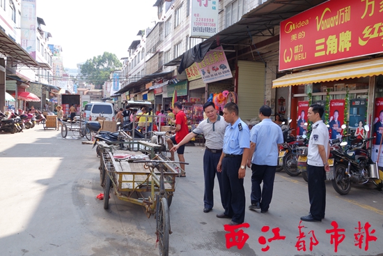 ????西江都市報(bào)訊 (記者 龍?zhí)靷鳎?9月3日,梧州市市場(chǎng)規(guī)范整治專項(xiàng)行動(dòng)啟動(dòng),該專項(xiàng)行動(dòng)是梧州市城市環(huán)境綜合整治的一項(xiàng)主要內(nèi)容。當(dāng)天,梧州市商務(wù)局聯(lián)合長(zhǎng)洲區(qū)政府、商務(wù)、環(huán)衛(wèi)、城監(jiān)和興龍辦事處等部門,分別對(duì)轄區(qū)的新城市場(chǎng)和兩廣市場(chǎng)的管理、秩序等內(nèi)容進(jìn)行檢查和整治。對(duì)檢查中發(fā)現(xiàn)的問題,執(zhí)法人員現(xiàn)場(chǎng)要求相關(guān)負(fù)責(zé)人落實(shí)整改措施。
