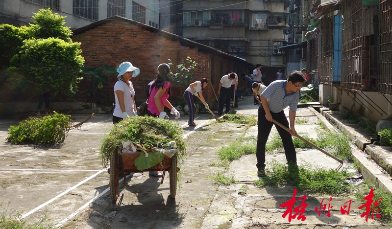?9月3日,在新興市場附近一棟居民住宅樓下,角嘴街道辦事處和社區的工作人員在清掃垃圾、清理衛生死角。 目前,我市全面開展城市環境綜合整治工作,各街道辦、社區紛紛行動起來,與有關部門聯動,開展環境衛生整治、占道經營整治、戶外廣告整治等工作,確保城市環境綜合整治取得實實在在的成效。 梁萍 攝