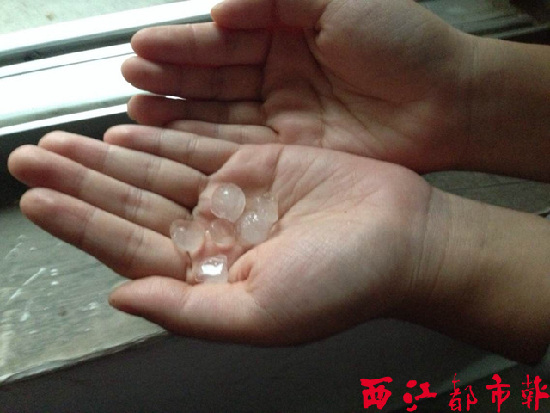 在新興三路聯通公司內,市民撿到許多冰雹。 網友何秋霞供圖