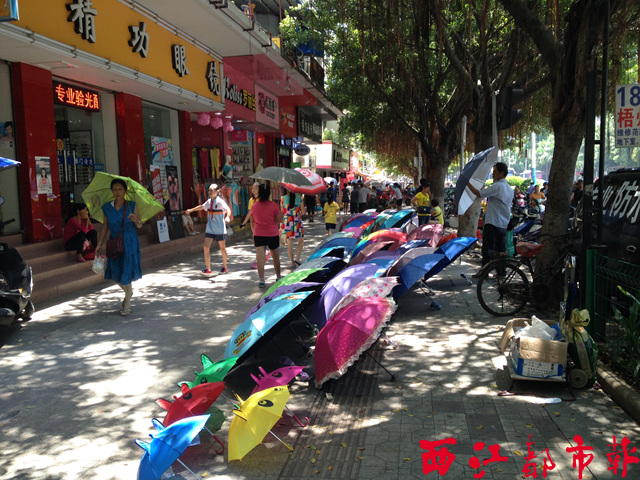 ????樹木蔭蔽的寬闊街道,本應是提供給市民通行、散步之用。但近年來,卻被一些商販占用,成為其經營的場所。梧州市區的太陽廣場至新興市場路段、梧州市婦幼保健院附近路段、東山沖路口等,已經是眾所周知的占道經營“重災區”。