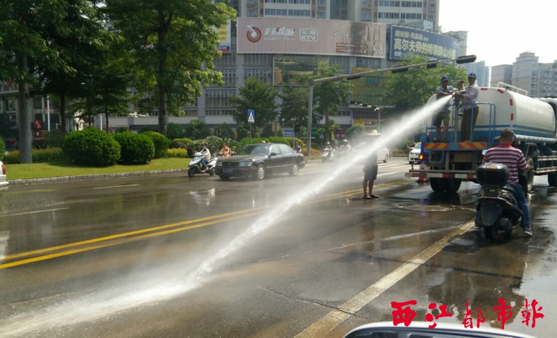 ?9月6日,市政工作人員在夢之島十字路口沖洗路面的淤泥。當(dāng)日,梧州市市政管理局派出大量人力和設(shè)備,對新興一路、新興二路、新興三路的路面淤泥進(jìn)行集中清洗。 本報記者 何鎏/攝