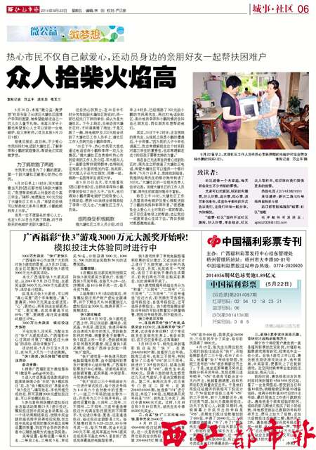 ????2014年5月12日,西江都市報發出了這個愛心號召,推出“微公益 微夢想”欄目,集結愛心力量,幫助我們身邊的困難群眾。至今,這個欄目已經發出了24個微夢想。