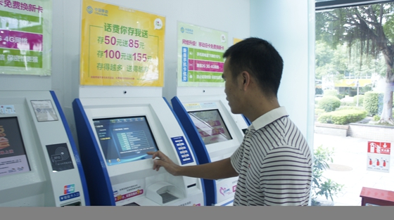 客戶使用自助服務(wù)終端進(jìn)行手機(jī)話費(fèi)充值