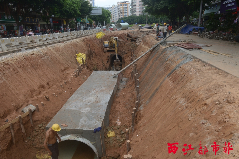 ?9月13日,在梧州市盛業大廈對開塌陷路段,施工人員正利用挖掘機器清理淤泥。據了解,該塌陷路段目前正按計劃開展修復工程。連日來,施工人員已經鋪設了部分用于地下排水的玻璃夾砂管。目前該工程正在抓緊推進。本報記者 蒙紹松/攝