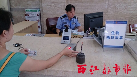 ?市民正在出入境管理部門服務窗口采集指紋信息、辦理申領手續。 實習生 蒙文潔 攝