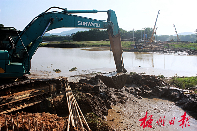 ???? 9月15日,梧(州)柳(州)高速公路藤縣蒙江河大橋項目在進行清淤施工。