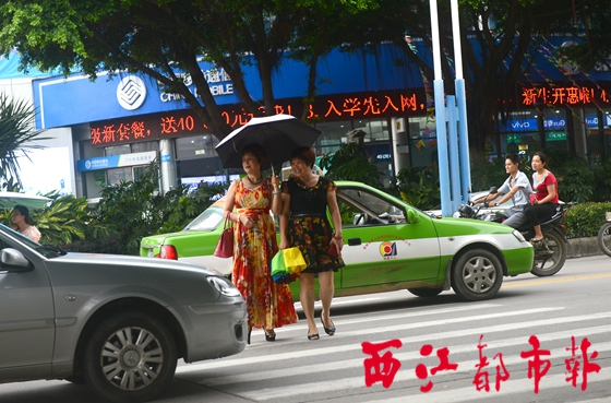 ????9月15日中午,記者來到西江路和西堤路多個沒有設置紅綠燈的路口蹲點。期間,途經上述路段的車輛,無論出租車、公交車、私家車還是摩托車,在看到斑馬線上有行人經過時,盡管有所減速,但沒有一輛車主動停在斑馬線前禮讓行人。有的車輛甚至鳴喇叭,示意行人避讓。這樣一來,站在斑馬線兩頭的行人,只能先讓車輛通行。此外,也有少數行人趁著車輛離斑馬線比較遠時,快速跑過馬路。