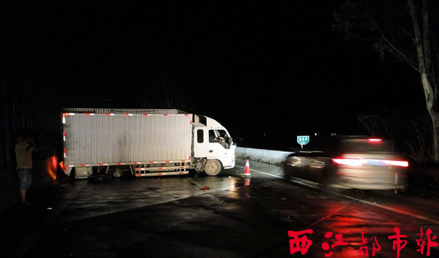 事故發(fā)生后,貨車橫停在高速公路上。