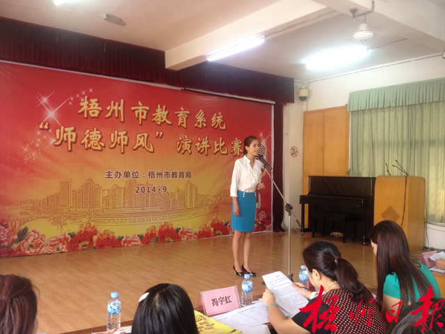 ??? 9月23日,市教育系統“師德師風”演講比賽舉行,參賽選手用身邊人、身邊事來進行演講,弘揚教職員工愛崗敬業、無私奉獻精神,鼓勵大家向先進典型人物學習。梁燕如 攝