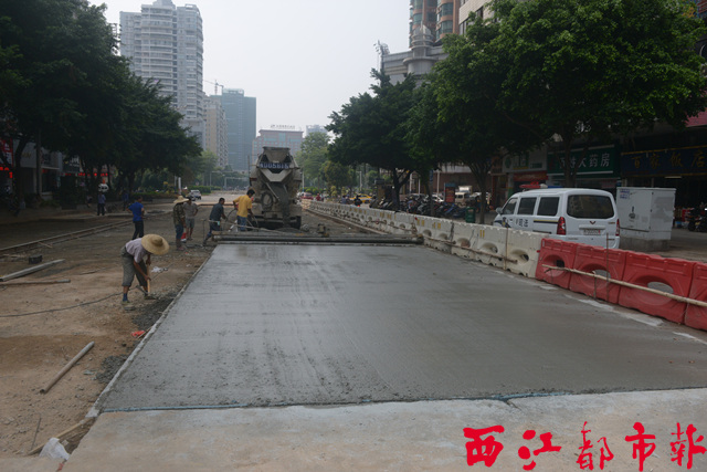 ????9月26日,施工人員在新興二路廣宇豪庭對出路段進行混凝土鋪設作業。據悉,該路段發生塌陷事故至今將近兩個月,經過有關部門抓緊施工,修復工程有望在近日完成。