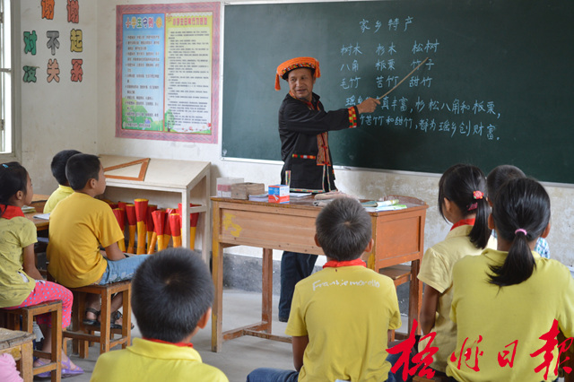 ????日前,在蒙山縣夏宜瑤族鄉高雷村小學,老師給學生們上瑤族語言課。 據了解,該鄉去年起開展“瑤族語言進課堂”活動,為各鄉村學校聘請瑤族語言老師每周上一節瑤族語言課傳授相關知識,讓瑤族語言得以傳承。 戴連升 彭峰 攝