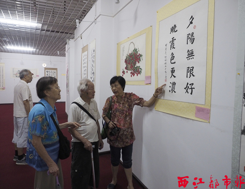 ?9月29日,由梧州市老年書畫研究會,蒼梧縣老年書畫研究會聯合舉辦的“慶國慶暨重陽節書畫聯展”,在中恒藝術廊展出。本次展出的98幅書畫作品,都是兩地老年會員多年來的精品之作。展覽時間為9月29日至10月3日。本報記者 陳健新/攝