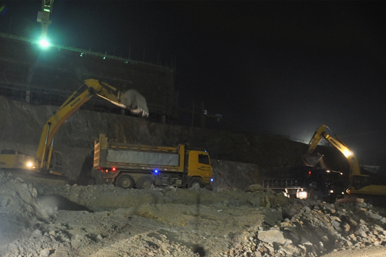 三班倒輪流作業(yè),晚上照常施工