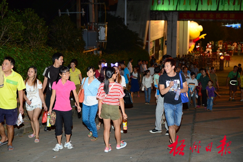 ??? 10月1日晚,市民興致勃勃地通過白云山山門爬山登高。