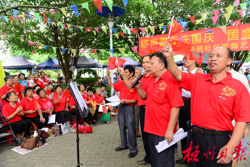 ?當天,我市多支群眾藝術隊在市區各公園、社區、廣場,自發組織開展歌詠、舞蹈表演,表達對祖國的熱愛之情。李鴻榮 攝