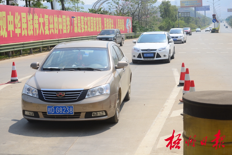 ????10月7日,返程的小車正通過馬梧高速公路梧州收費站。