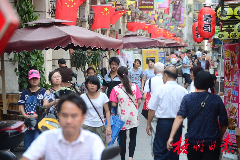 ????國慶長假期間,市內的多條商業街道、商廈等地方迎來了不少市民游客,人們在假期里高興地品嘗美食、購物玩樂,享受節日的歡樂。 李鴻榮 攝