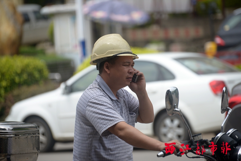 ?9月24日,在新興二路上,一名駕駛者一邊駕駛摩托車一邊打手機(jī)。