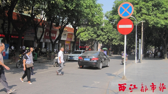 ????10月10日上午10時(shí)許,記者來到現(xiàn)場(chǎng)走訪,就發(fā)現(xiàn)了不少司機(jī)為貪圖方便,直接駕駛車輛逆行進(jìn)入大學(xué)路的現(xiàn)象。雖然交警部門在一中花圃旁邊的道路上設(shè)置有明顯的“禁止駛?cè)搿睒?biāo)志,表明該路段禁止車輛從一中花圃方向進(jìn)入。但在短短十分鐘時(shí)間內(nèi),記者就觀察到有十多輛摩托車或助力車以及一輛小車接連逆行進(jìn)入單行車道內(nèi),對(duì)警示標(biāo)志視而不見。同時(shí),這一舉動(dòng),也使得對(duì)向正常駛來的車輛有緊急閃躲動(dòng)作,十分危險(xiǎn)。