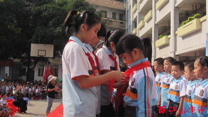 ????西江都市報訊 (記者 楊珊 通訊員 譚慶蓮) “我是中國少年先鋒隊隊員,我在隊旗下宣誓,時刻準備著為共產主義事業貢獻力量!”10月10日,“紅領巾相約中國夢,核心價值觀記心中”少先隊員入隊儀式,在梧州市振興小學舉行。這也是梧州市紀念少先隊建隊65周年隊日活動的其中一個內容。