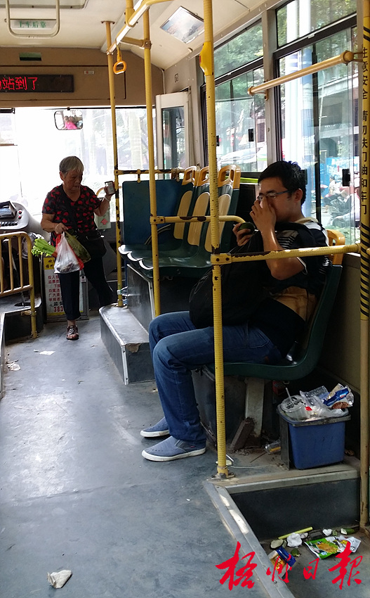 近日,在一輛31路公共汽車上,車廂內的垃圾桶旁丟滿垃圾。 公共汽車連續(xù)運行中,可用于車廂環(huán)境清潔的時間有限,乘客應注意不要亂扔垃圾,共同維護良好的乘車環(huán)境。同時,公交運營單位也應盡量完善車上保潔設施。 黃東榮 攝