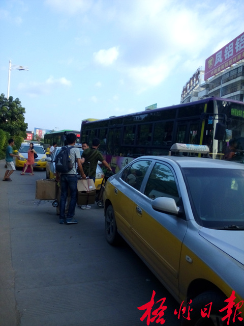 ????根據(jù)市民的反映,記者在9月15日下午四時來到公交車七中站,以了解情況。記者一下公交車就被拉客的的士和私家車司機團團圍住,不斷問“去藤縣,要不要搭車?”當記者搖頭拒絕后有的司機還不死心地繼續(xù)追著問。記者在現(xiàn)場看到,下午四時多,公交車站站臺前后的街道已經停了不少的士、私家車、摩的等招客車輛。但是,兩個不同方向的公交車站所停招客車輛有差別——七中校門口旁邊的公交車站主要是去往藤縣方向的的士、私家車、面包車占道招客,而七中校門口對面的公交車站則是藤縣大巴和在市區(qū)載客的的士,而候客摩的則停在站臺后的非機動車道上。