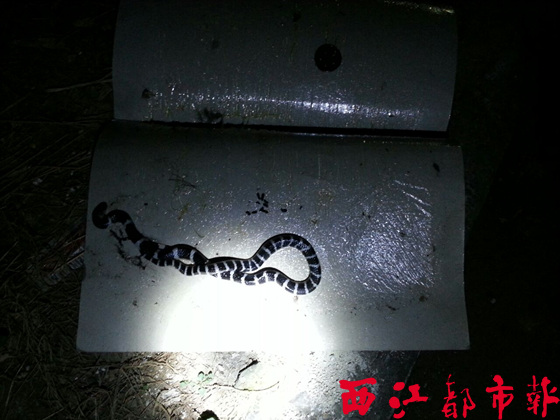 西江都市報(bào)訊(記者 黃穎盈)10月13日,一位家住東山?jīng)_居委附近的市民,在家中發(fā)現(xiàn)了一條長(zhǎng)約40厘米的銀環(huán)蛇,因捕蛇專(zhuān)家短時(shí)間內(nèi)無(wú)法趕來(lái)現(xiàn)場(chǎng),情急之下自行用石塊將蛇砸死。對(duì)此,蛇傷外科醫(yī)生表示,貿(mào)然打蛇如果方法不當(dāng),反而更容易被蛇攻擊。同時(shí),由于蛇類(lèi)以捕食鼠類(lèi)為主,有益于生態(tài)環(huán)境,最好由專(zhuān)人將蛇實(shí)施抓捕并放歸自然。