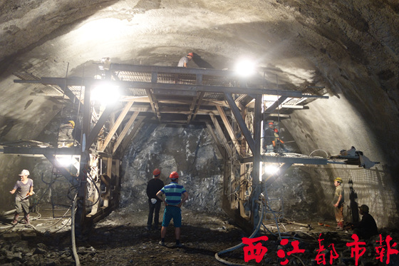 進口位于和平鎮座垌村的雙魚頂隧道左洞長837米、右洞長822米,是梧州段最長的一個隧道。施工單位中國水電建設集團路橋工程有限公司項目部隧道主管王占龍告訴記者,自今年3月開工以來,建設者們克服地下水豐富、圍巖破碎等干擾因素,每天投入近百名工人24小時不間斷施工,采用左右洞同時建設、單向開挖的施工方法,全力推進各項建設工作。目前,該隧道左洞、右洞已分別推進近70米、80米深度,計劃于明年年中雙洞同時貫通。