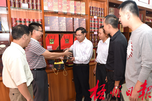 10月18日,參加六堡茶博覽交易會的外地茶葉經銷商,到梧州六堡茶企業了解產品情況。孟亞西 攝