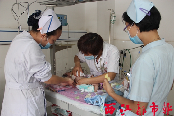 ????怎么辦?夫婦倆當即商量,廣東佛山的醫療費用太高,自己遠遠負擔不起。可是,親生骨肉怎能夠輕言放棄?于是,10月19日,夫婦倆只好趕緊帶著小孩回到老家,找到倒水鎮衛生院救治。