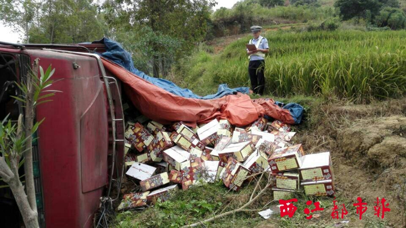 ????當日9時許,路過的村民逐漸多了起來。當看到散落在地的方便面時,不少村民大膽上前自行搬離貨品。在短短幾分鐘內,就有十多箱方便面不見了蹤影。這時,貨車司機才打電話報警。