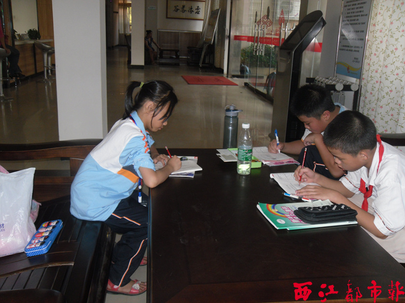 放學鈴聲過后,學生蜂擁從學校走出來,他們當中,部分學生不約而同來到華洋社區服務大廳,分別找位置坐下,拿出書本和作業本,開始寫作業或閱讀。