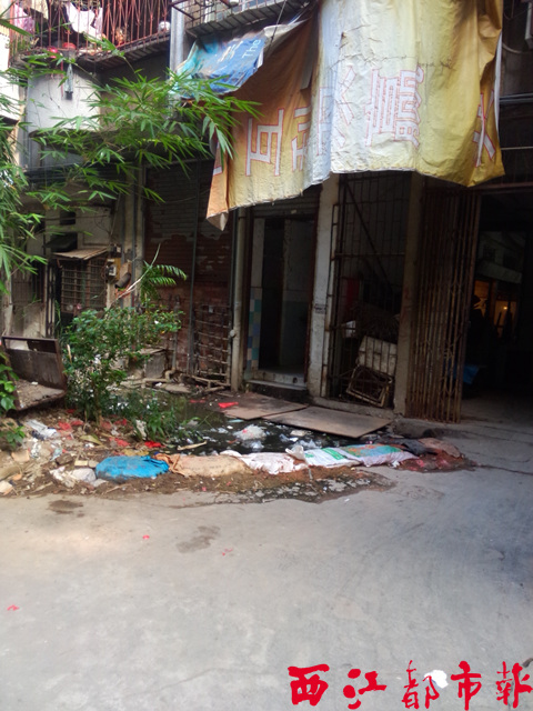 ????“公廁的氣味太難聞,有時要捂住鼻子和嘴巴。”據距離該公廁約七八米遠的裁縫店店員黃小姐說,受公廁堵塞的影響,位于店面旁邊的老舊明渠排污口時常會涌出一些蛆蟲。出于衛生考慮,黃小姐每天都要用消毒水清潔鋪位地面。據周邊居民和商戶反映,該公廁堵塞已將近三個月,卻一直未見有人前來修繕和清理。
