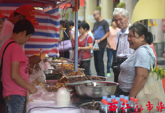 ??? 10月28日,第十一屆梧州國際寶石節嶺南美食節活動在梧州騎樓城正式開幕。來自海南、重慶、新疆、廣東等地的美食匯聚于此,與梧州本土的特色嶺南美食同臺比拼。活動共設175個展位。 本報記者 蒙紹松/攝