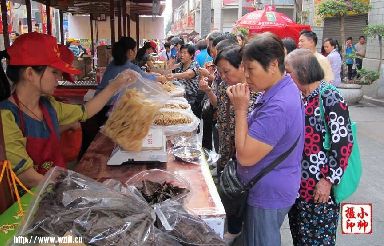 ????美食節上的麻辣小龍蝦,每只小龍蝦約兩根手指大小,色澤香味讓路過的市民垂涎欲滴,躍躍欲試。抽真空包裝的廣西陸川豬肉、四川鄉里土豬肉,以及重慶蜂蜜手工鍋巴肉和海南榴蓮等,各具特色,讓“吃貨”們目不暇接,買到手軟。當然,各路商家也是賺得盤滿缽滿,喜笑顏開。