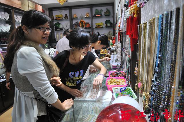 寶石節期間,大批的客商和群眾會到梧州寶石城選購寶石飾品。 李鴻榮 攝